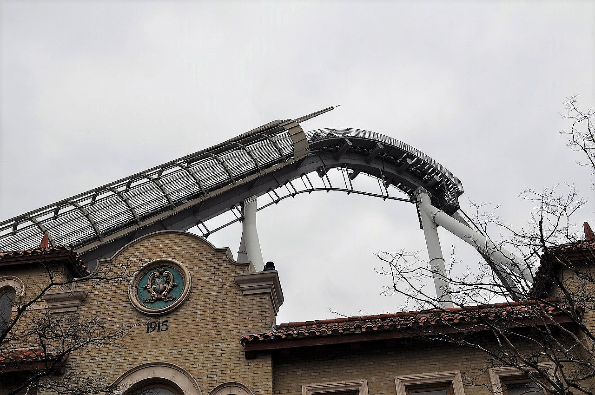ハリウッド ドリーム ザ ライドのファーストドロップ 下に見えるのはハリドリの建物の屋根 キャステル Castel ディズニー情報